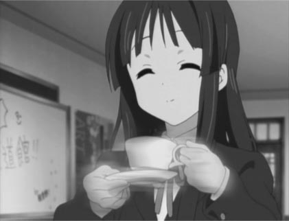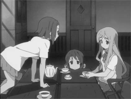 『けいおん!』の主要な描写といえば、ただ唯たち四人が軽音部の部室に集まり、のんびりとティータイムを楽しんでいるだけである。だがその描写が、不思議とのどかな安らぎをもたらすのである。