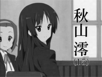 まずルックスからして、秋山澪は主人公にふさわしい。長身でスタイルもよく、長髪黒髪(長髪黒髪は、かつてはヒロインの記号的象徴だった)。物語上の約束事として、最上の美少女として描かれている。