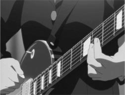 最重要と思われる楽器は、フェティッシュな領域で描写されている。キャラクターごとの身体的設定に対し、妥当と思われる楽器が選択されているし、もちろん全て実在する楽器ばかりだ。作家の下手な独創をあえて排除し、音楽を徹底的に観察し、視覚的に描写しようという意識が見えてくる。