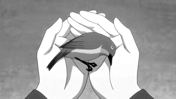 ウグイスがぱっと芳佳の手から飛び立った。治ったのだ。ウ