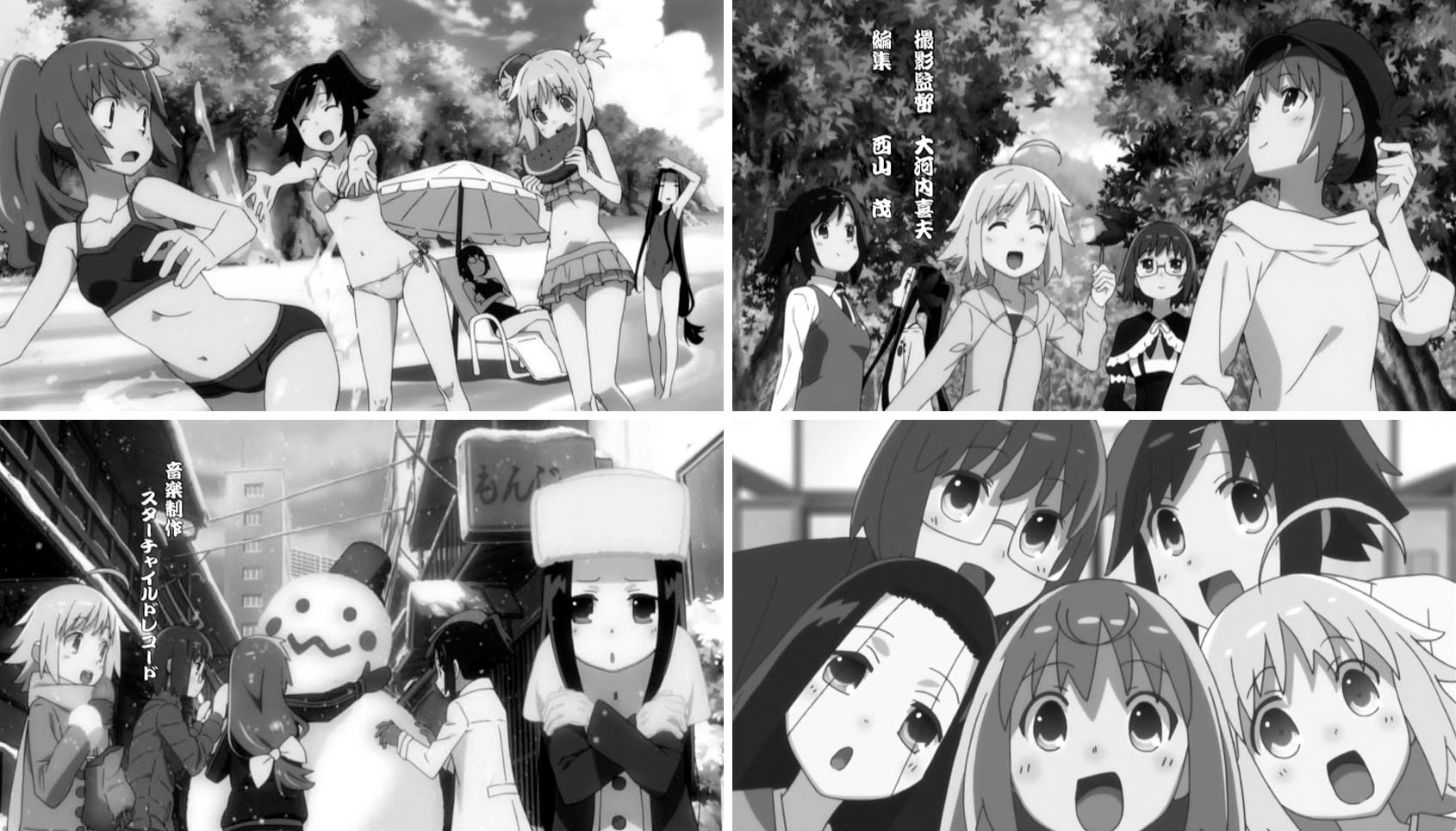 第1話でみんなが集まってくる場面で一同が着ている衣装は原作第2巻のおまけページに描かれた、ヤスが想像する一同の日常の場面から採られている。第2話の衣装は、原作第4巻目次ページ手前のページに描かれているものを手本にされているようだ。