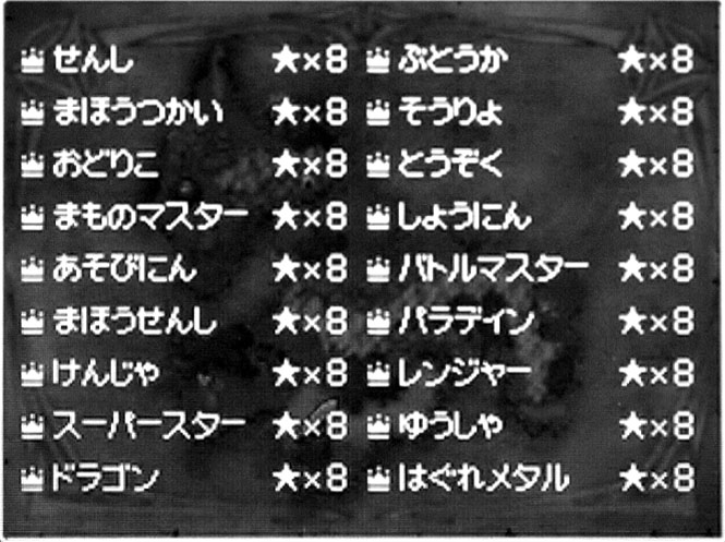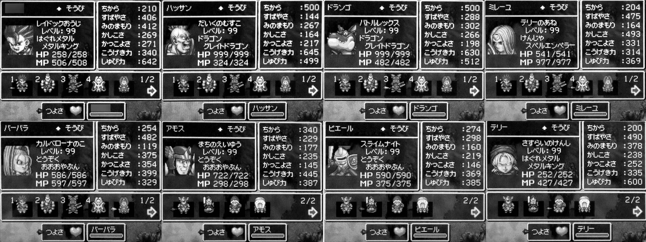 主要8キャラクターのみオールレベル99。8キャラクターのみ全職業コンプリート。