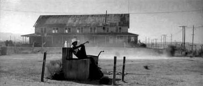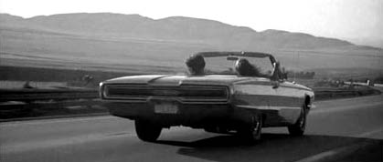 冒頭の、砂漠に一本道の道路が貫かれているカット。初めはモノクロームだが、次第にセピアに変わり、最後には色鮮やかなグリーンが現れる。