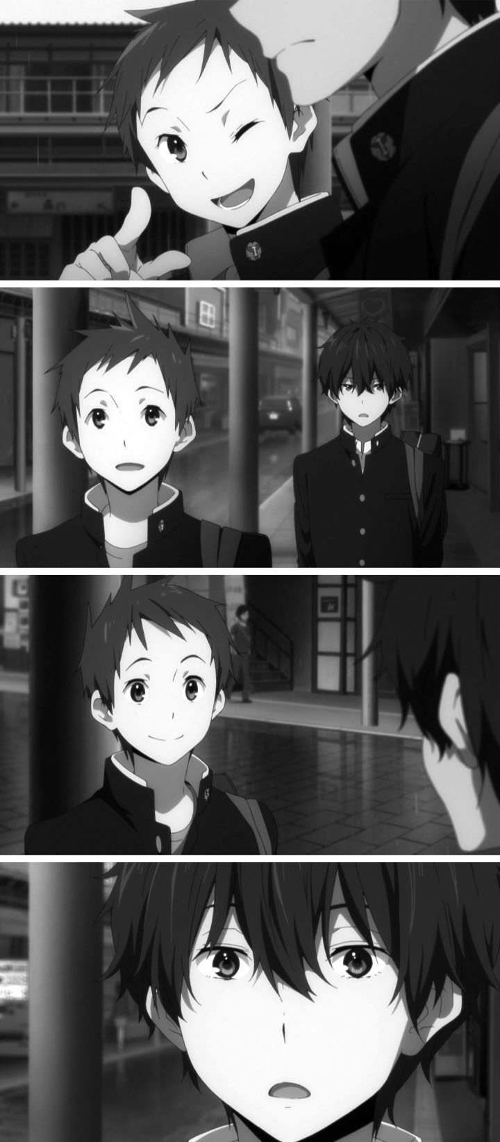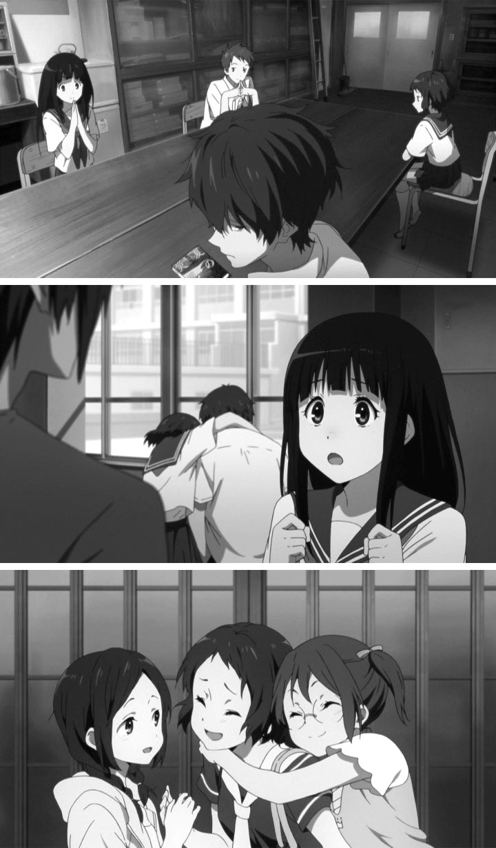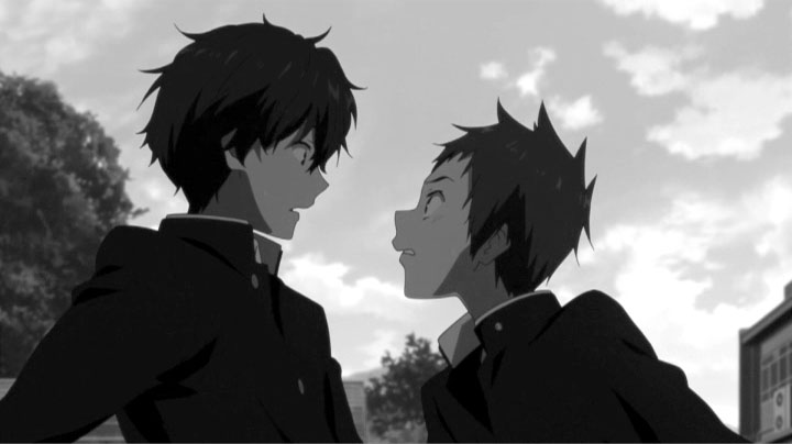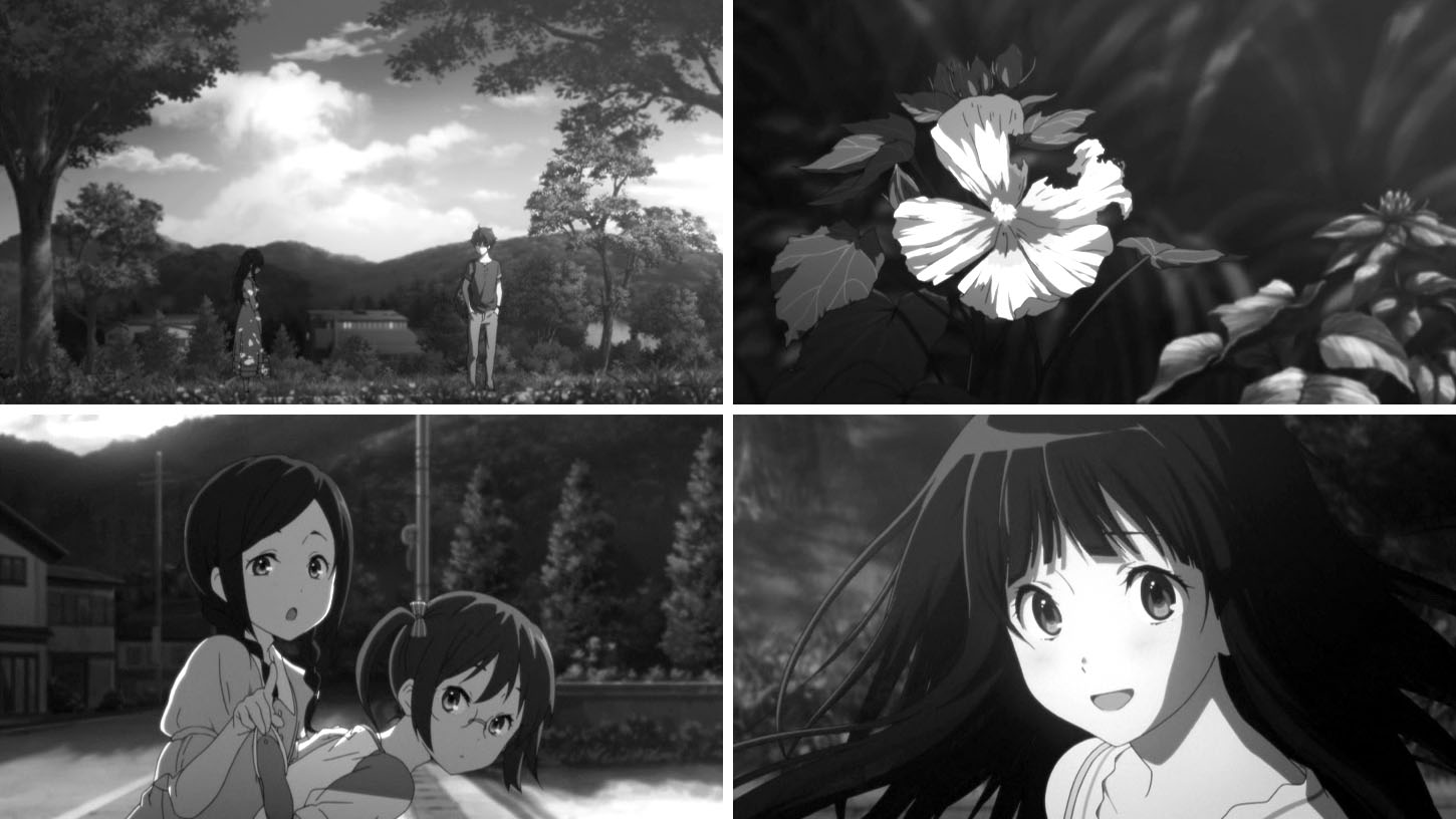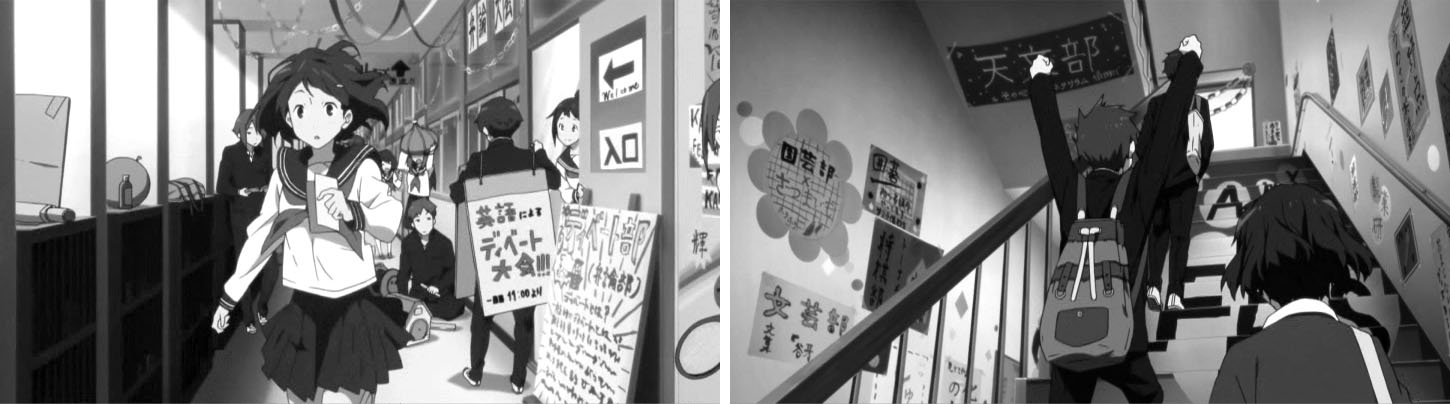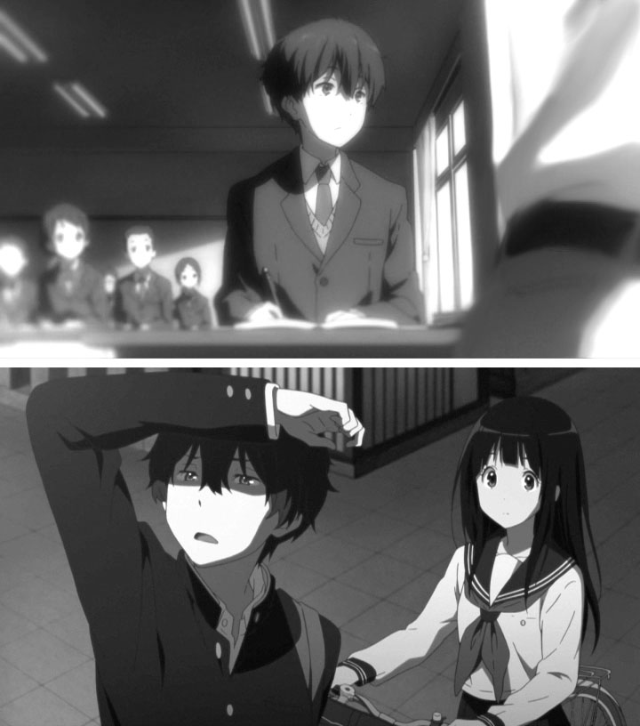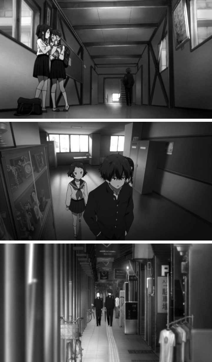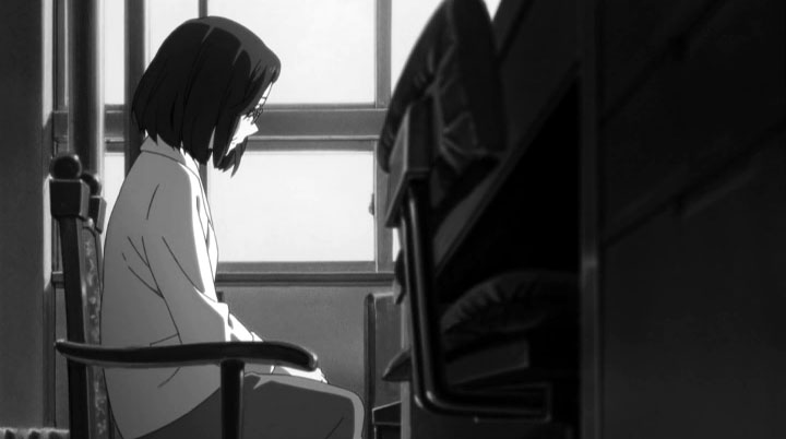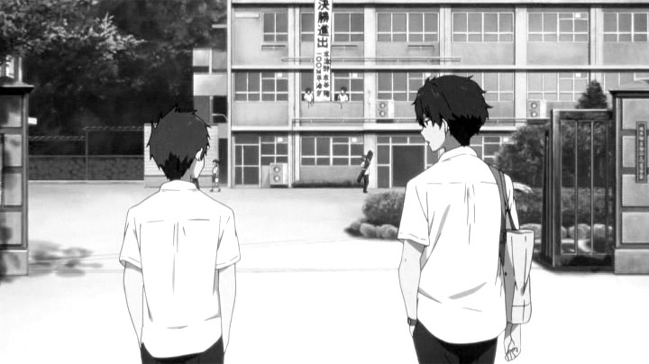 教室でのゲリラライブを通して卒業までのわずかな日数、画面の色彩はにわかに淡く漂白していく。テレビシリーズで、色彩の差で学校に留まる者、卒業する者との間にある空気の差を表現していたが、おそらく狙いは同じところにあるのだろうと考えられる。
