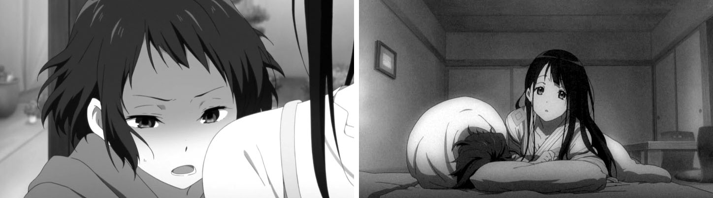 子守歌を歌う平沢唯。うとうとして……ほんの一瞬、白目を見せる。ヒロインらしからぬ描写に挑戦する『けいおん!』である。