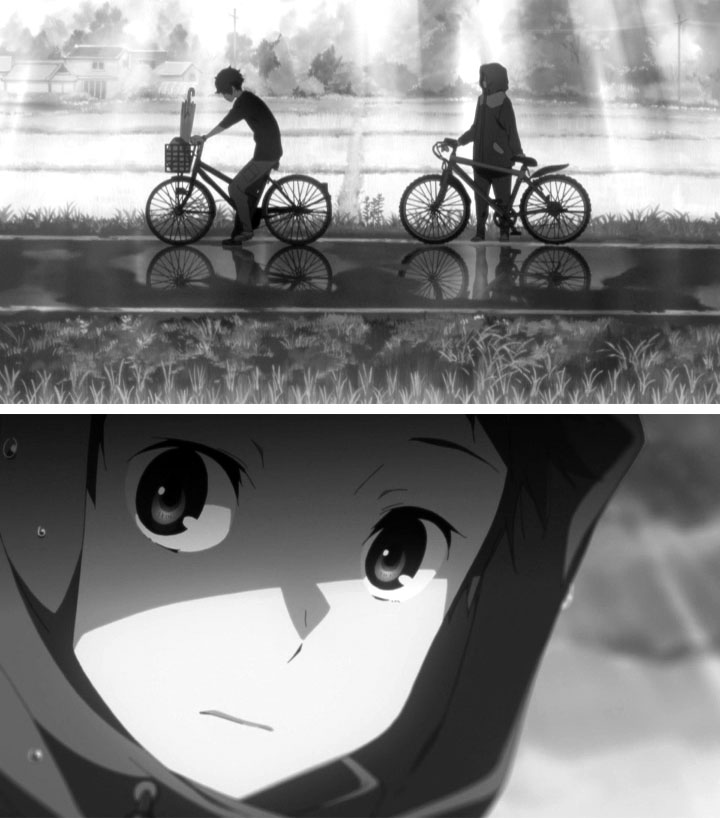 高校時代という青春時代のクライマックス、少女時代の輝きの強さをカット全体で表現した秀逸な場面。特に感動的な台詞もないが、ここで涙する人は多い。カットの後半、画面の中を飛び散る光は撮影の効果だが、動きはアニメーターが指定した。