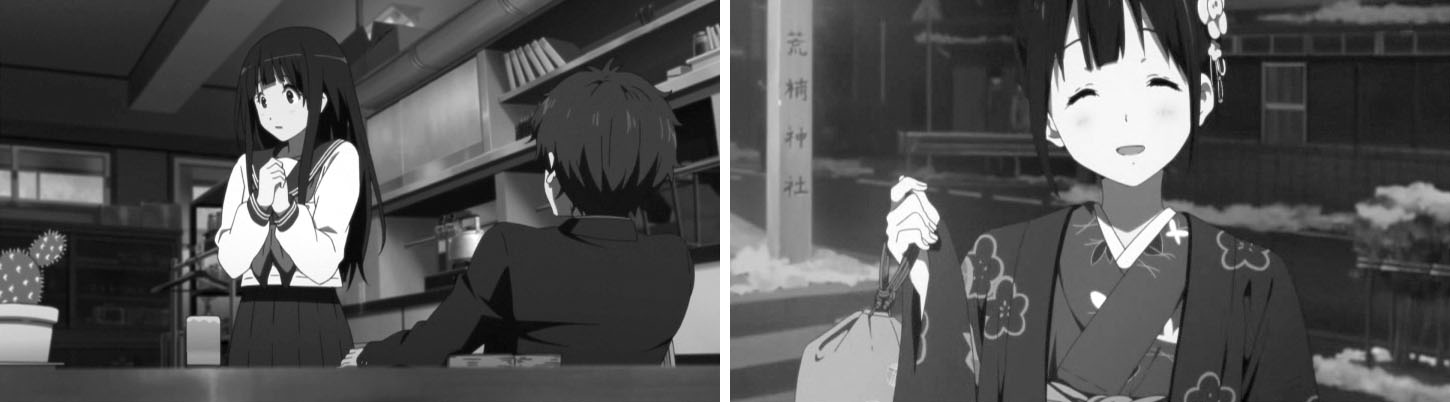 物語には大きな波はなく、平坦な展開はキャラクター達が冒頭の地点から大きく移動するということもない。この平坦さをごまかすように余白をネタで埋めている感じだろうか。およそ20分という尺を持ちながら、この時間の中で有意義なプロットは少なく、キャラクター達が主体的な意思を持って物語を進行・変化させる事例は少ない。