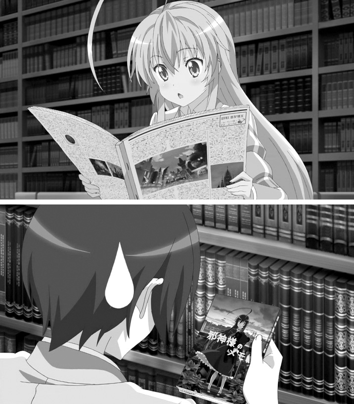 この方法論が最初に提示されたのは第2話、ニャル子さんがベンチに座り、「さーて今日の世界情勢は、と」と新聞を開く。これは千葉繁が押井守作品に何度か繰り返したギャグである。この台詞は『うる星やつら』『パトレイバー』などで使用された。これをニャル子さんが踏襲したのである。これが、実は後半に向けたかなり重要な伏線であった。